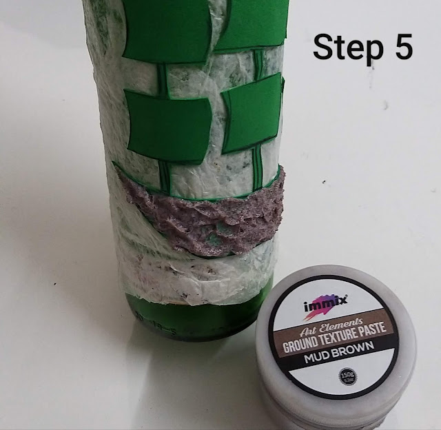 Step 1: I have taken an empty beer bottle and have pasted tissue papers over it with the help of Immix Art Medium Matte
